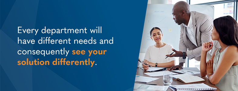 At the foundation of your multi-departmental strategy is the recognition that each of the departments that you’re dealing with has different needs vis-à-vis your solution, and in consequence, will view that offering in a different light.
